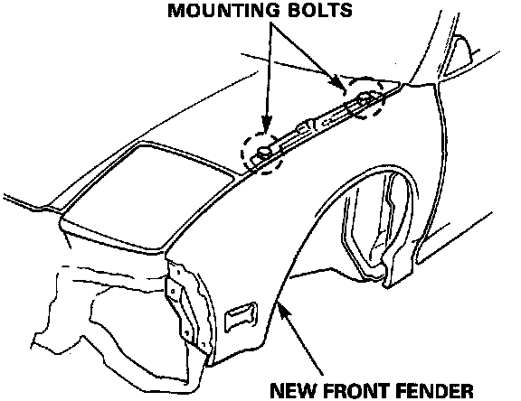 5. Apply paint on the back of the new front fender. See Paint Repair section
