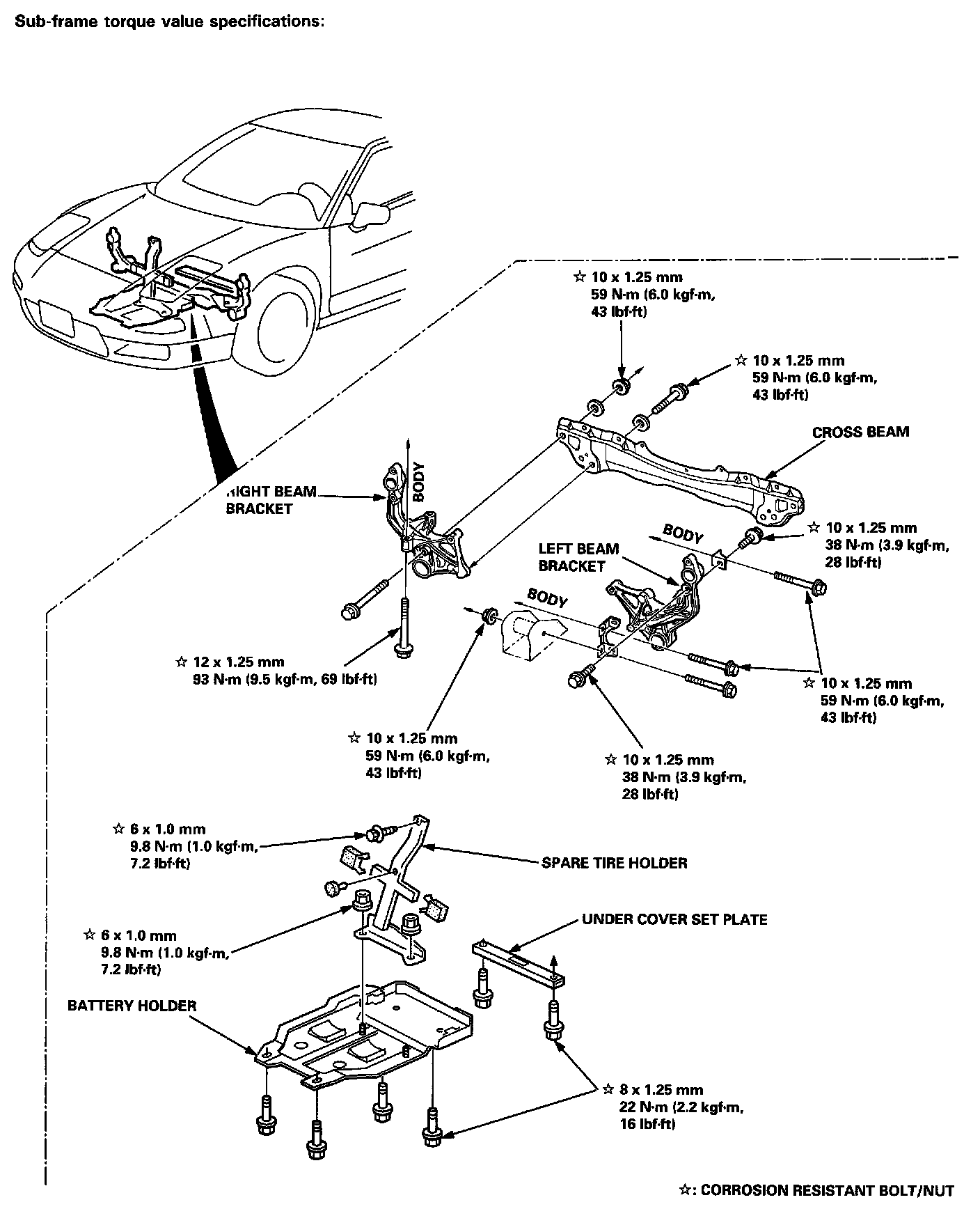 Front Sub-frame/Battery, Spare Tire Holder: