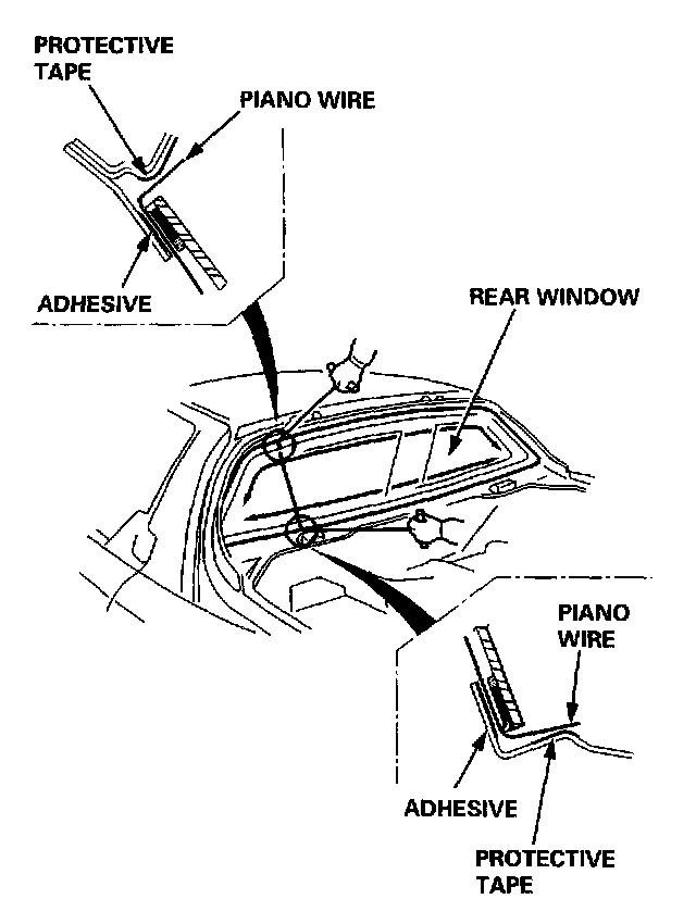 CAUTION: Hold the piano wire as close to the rear window as possible to prevent damage to the body.