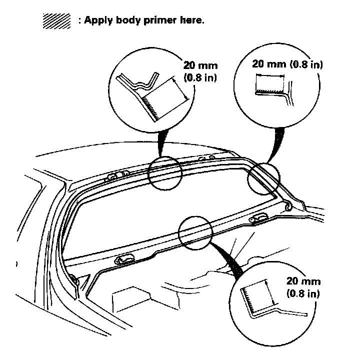 - Do not apply body primer to the rear window, and do not get body and glass primer sponges mixed up.
