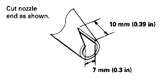8. Before filling a cartridge, cut the end of the nozzle as shown.