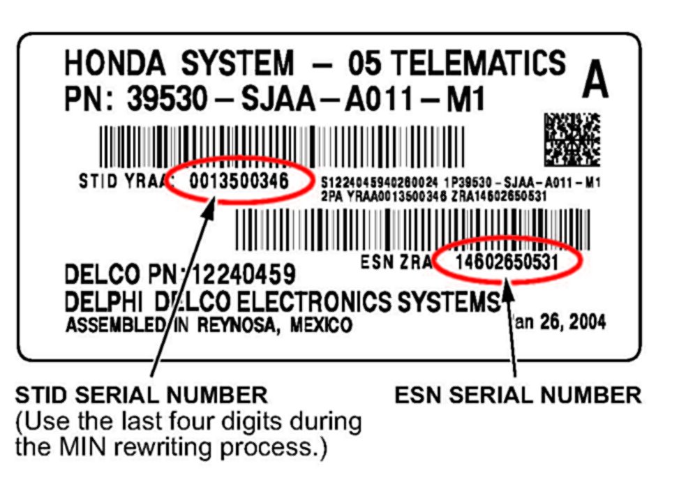 2. When OSTA answers, say that you are an Acura technician, you need to register a new OnStar control unit, and the new unit needs a new MIN. The OSTA agent will guide you through the registration process and give you a new MIN for the new control unit. Write down the new 10-digit MIN; you will use it during the programming process.