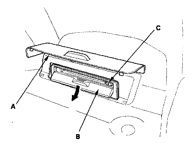 2. Open the cover (A) on the right side of the trunk to gain access to the navigation unit.