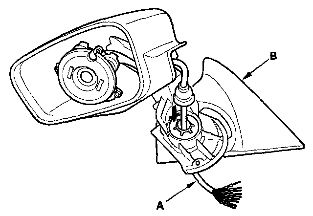 4. Remove the three Torx screws, and separate the power mirror actuator (A) from the housing (B).