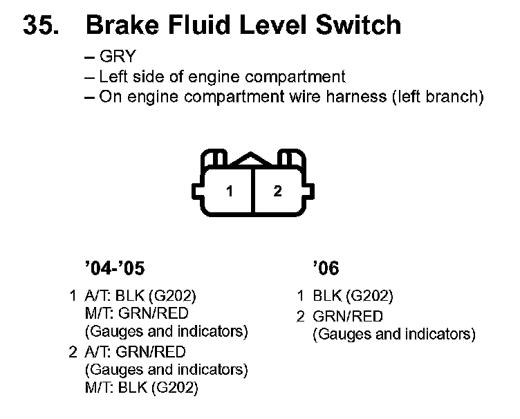 35. Brake Fluid Level Switch: