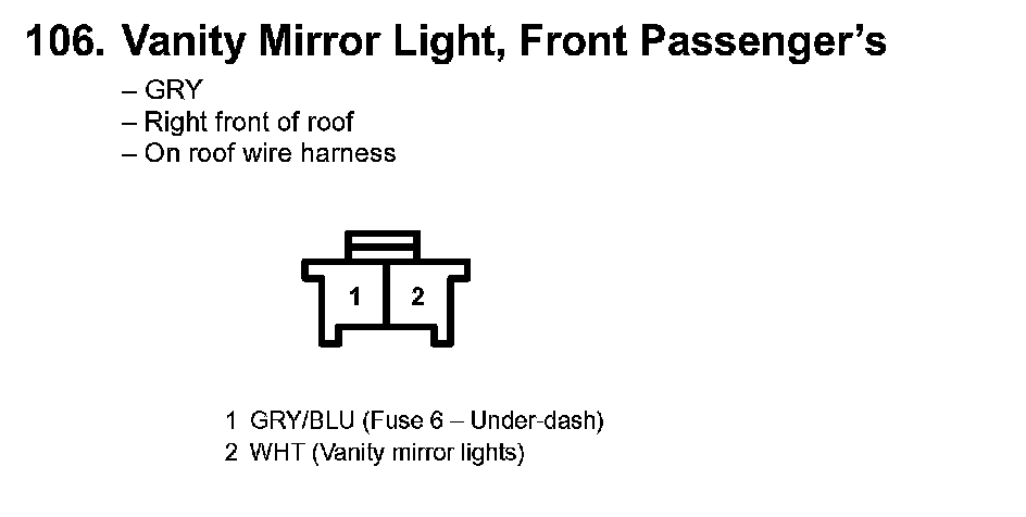 108. Vanity Mirror Light Switch, Front Passenger's:
