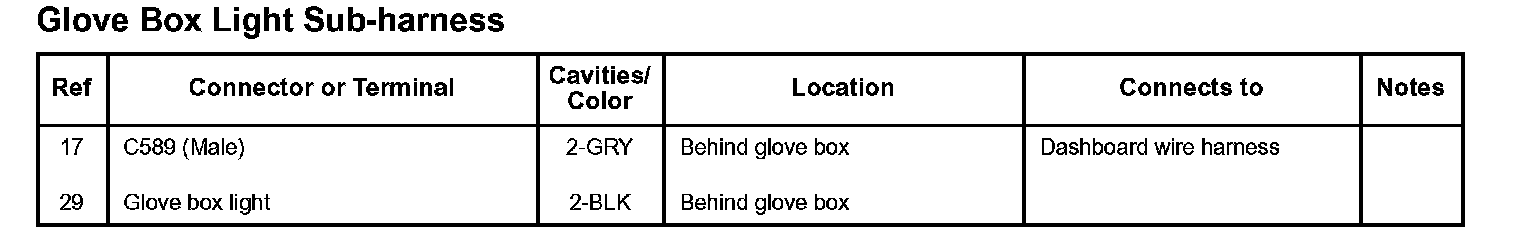 Glove Box Light Sub-harness: