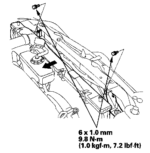 6. Remove the bolts and the radiator upper mount brackets.