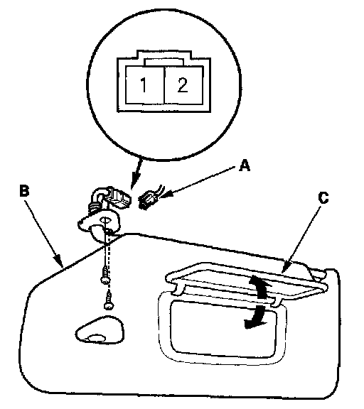 2. Disconnect the 2P connector (A) from the sunvisor (B).