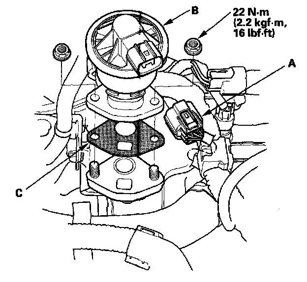 4. Install the valve in the reverse order of removal with a new gasket (C).