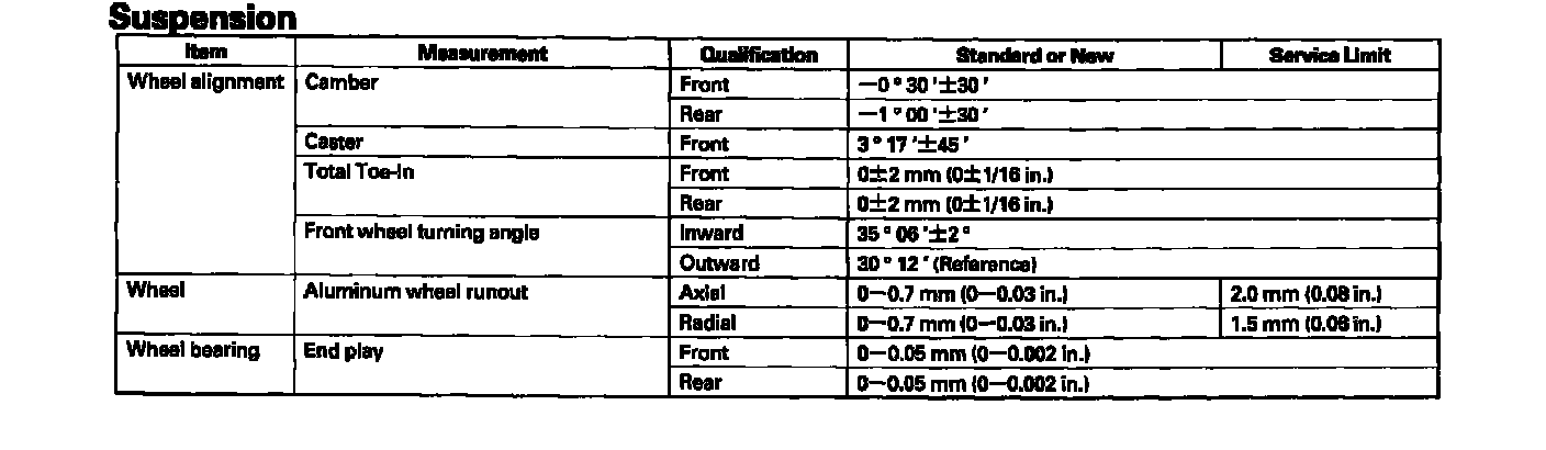 Suspension: Specifications