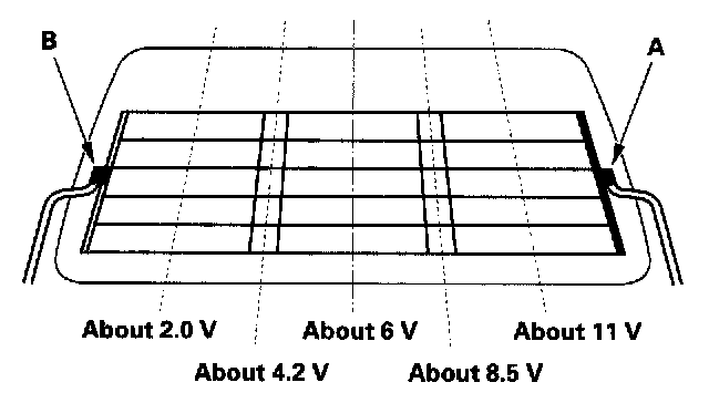 1. Check for voltage between the positive terminal (A) and body ground with the ignition switch and defogger switch ON. There should be battery voltage.