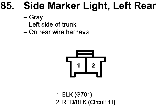 85. Side Marker Light, Left Rear: