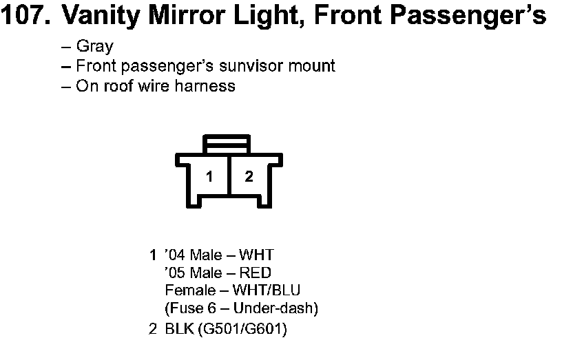 107. Vanity Mirror Light, Front Passenger's: