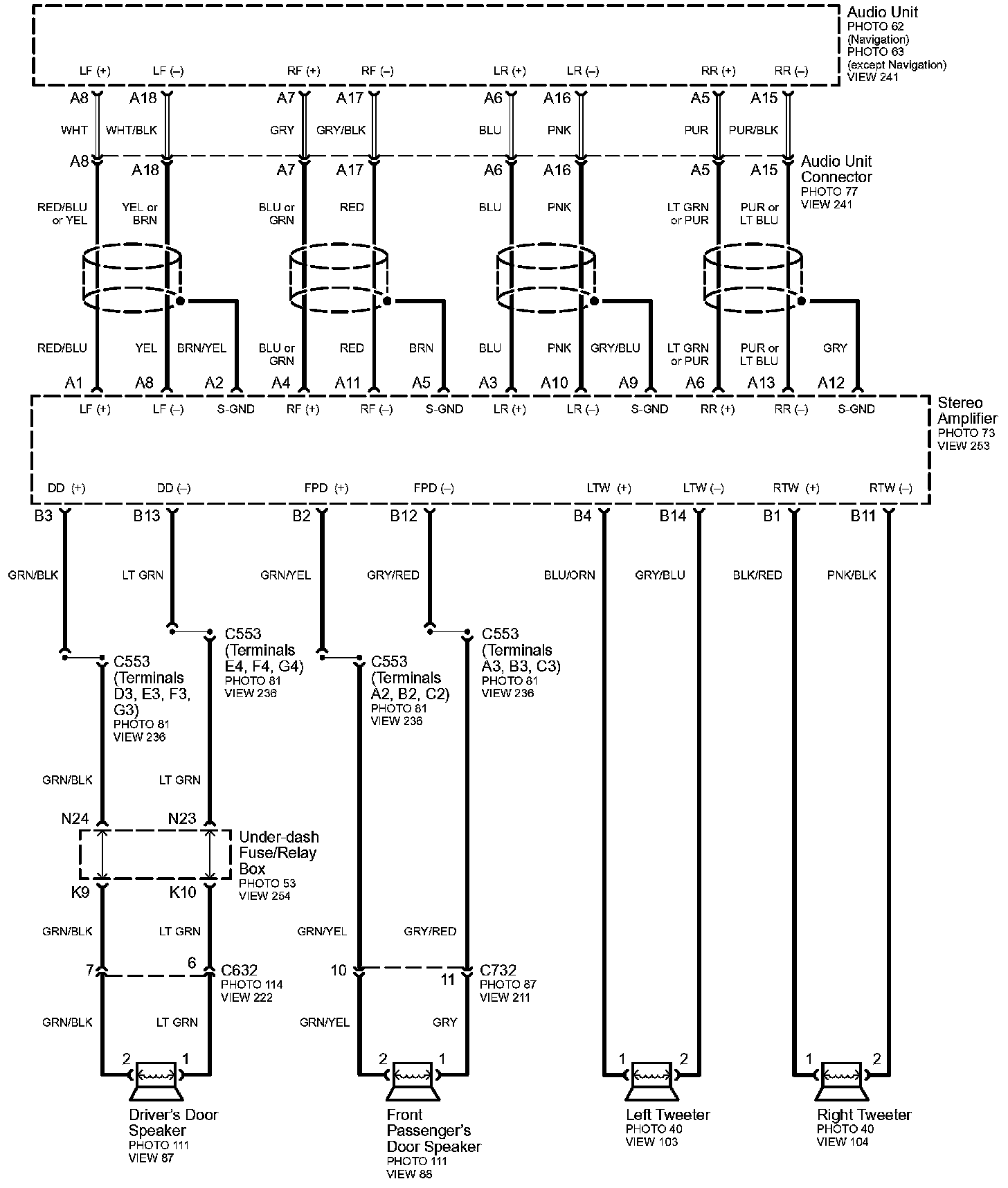 Connector Views: Connector terminal views (references to VIEWS) referred to within these diagrams can be found at Connector Views by View Number. Connector Views By View Number