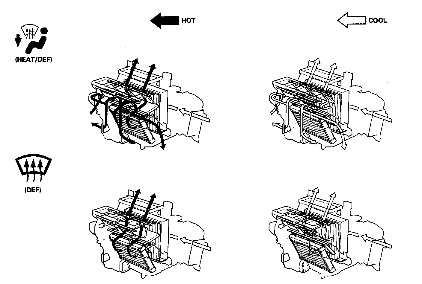 System DescriptionThe air conditioning system removes heat from the passenger compartment by circulating refrigerant through the system.