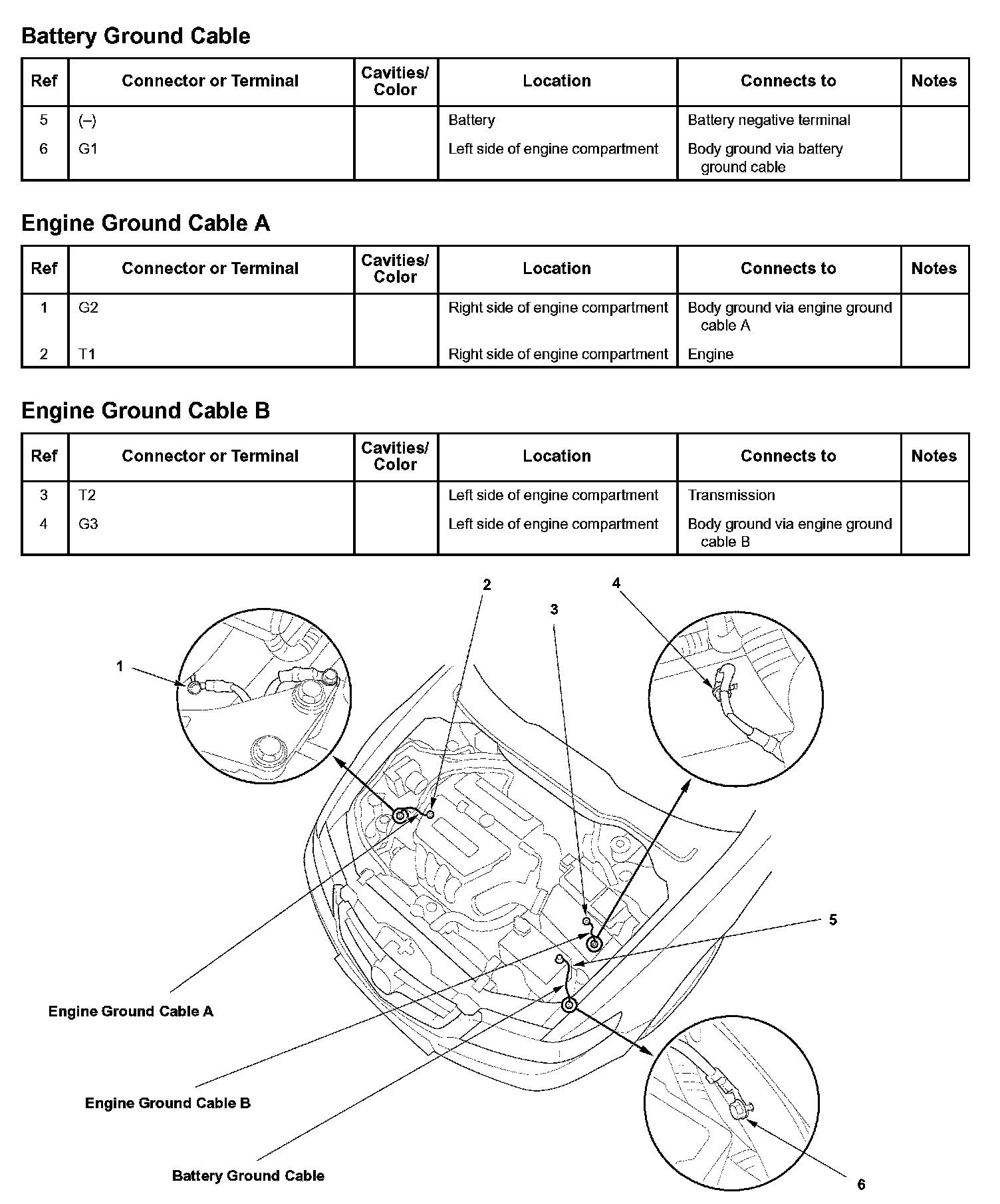 Battery Ground Cable/Engine Ground Cable A/Engine Ground Cable B: