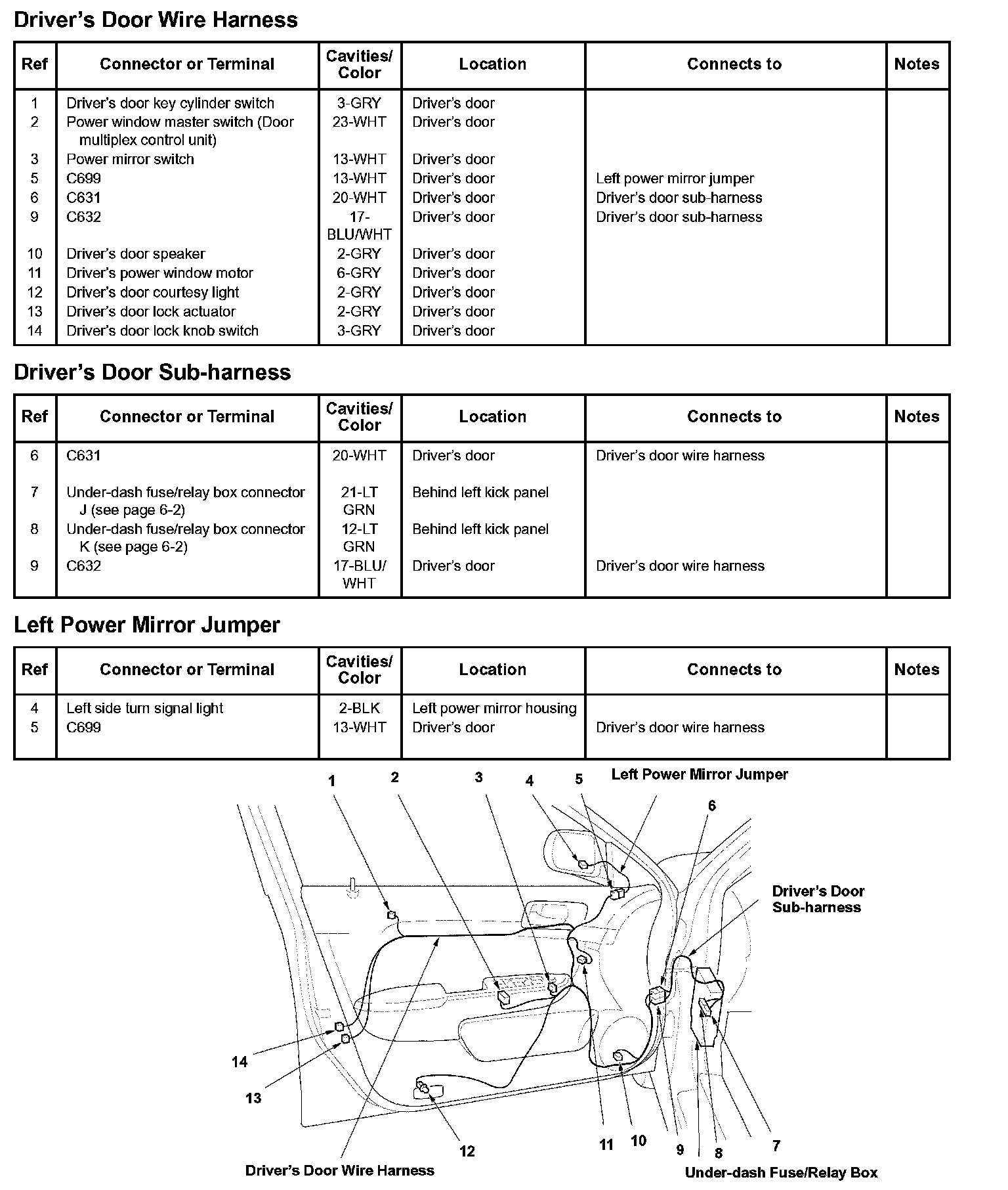 Driver's Door Wire Harness/Driver's Door Sub-harness/Left Power Mirror Jumper: