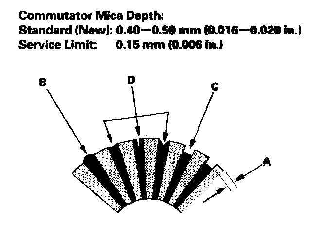 - If the commutator runout is within the service limit, check the commutator for carbon dust or brass chips between the segments.