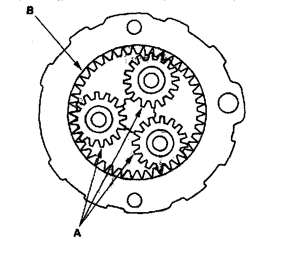 13. Check the planetary gears (A) and ring gear (B). Replace them if they are worn or damaged.