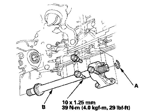 12. Clean the areas where the intermediate shaft contacts the transmission (differential) with solvent or carburetor cleaner, and dry with compressed air. Then install the intermediate shaft (B), be sure not to allow dust or other foreign particles to enter the transmission.