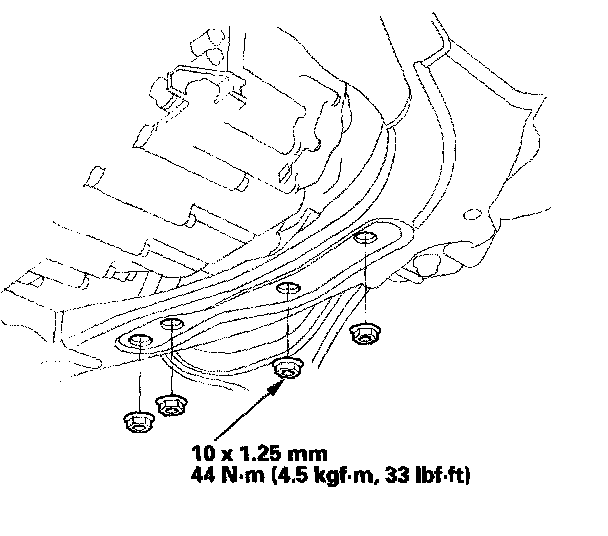 22. Install the transmission lower mounts nuts.