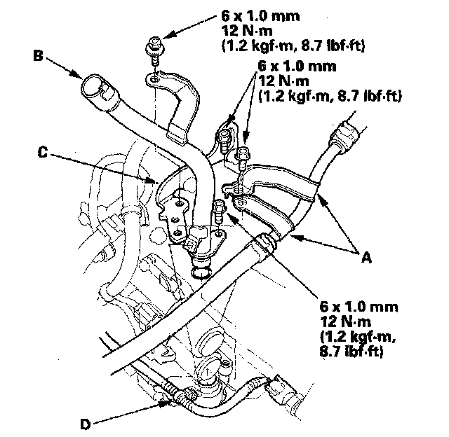 11. Remove the harness clamp (D), then remove the ATF dipstick guide pipe.