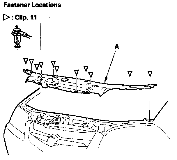 1. Detach the clips, then remove the front bulkhead cover (A).