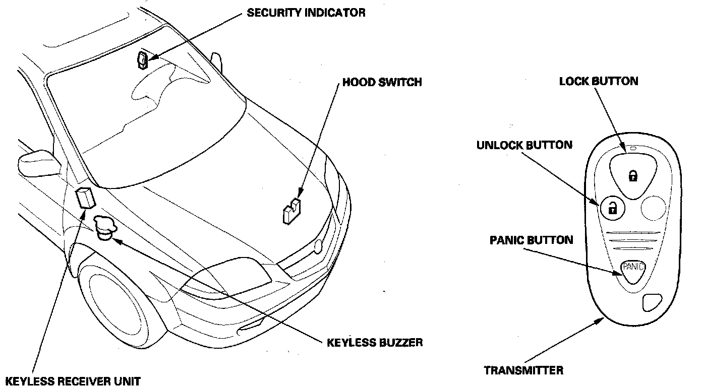 Keyless/Power Door Locks/Security System - Component Location Index: