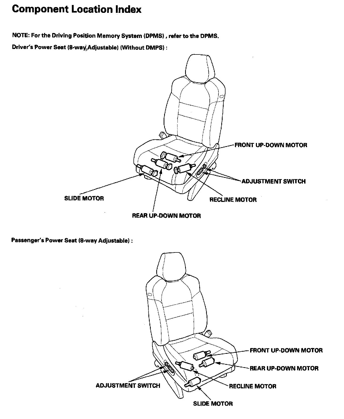 Seats Component Location Index: