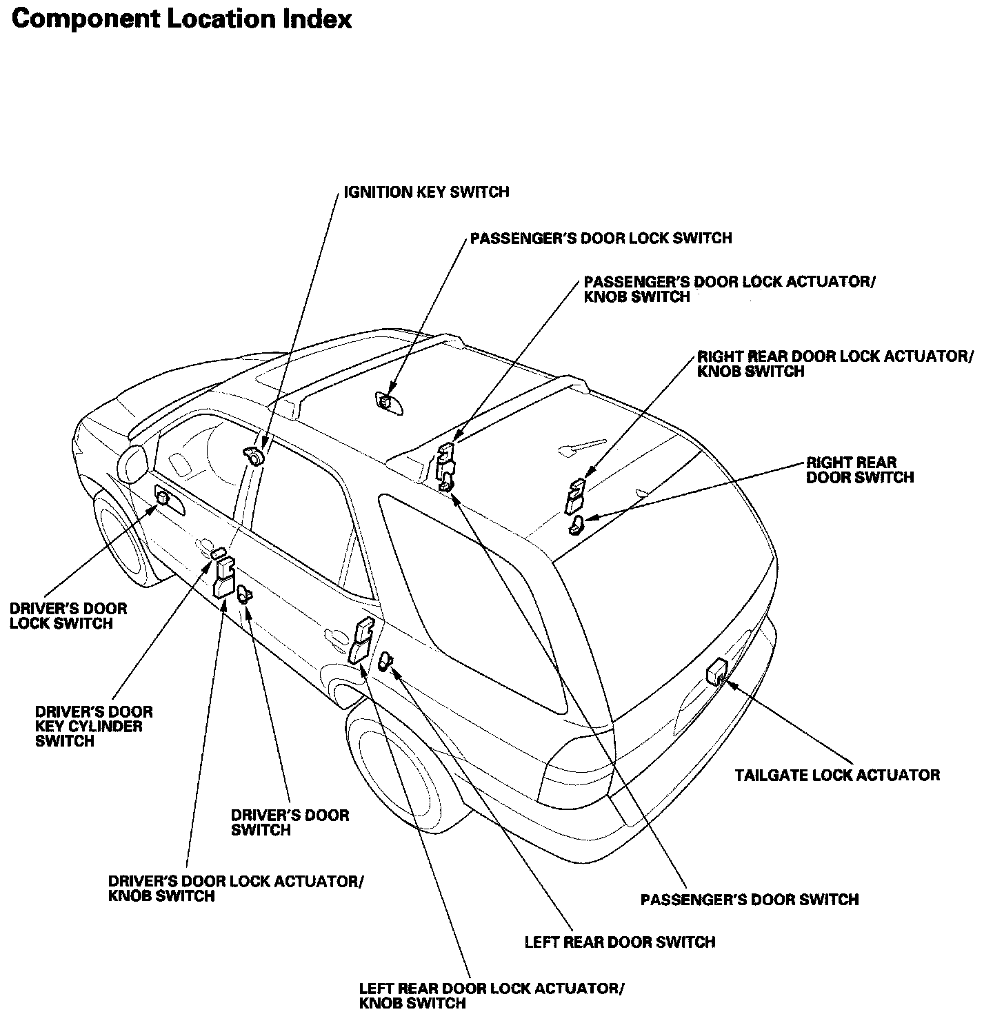 Keyless/Power Door Locks/Security System - Component Location Index: