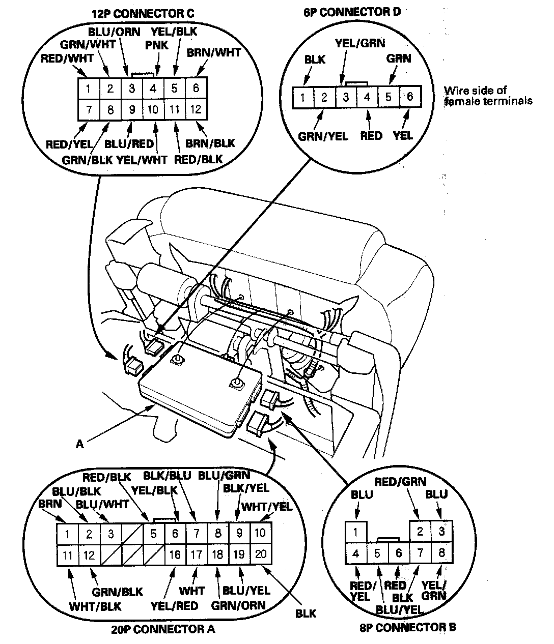 NOTE: All connector views are from wire side of female terminals.