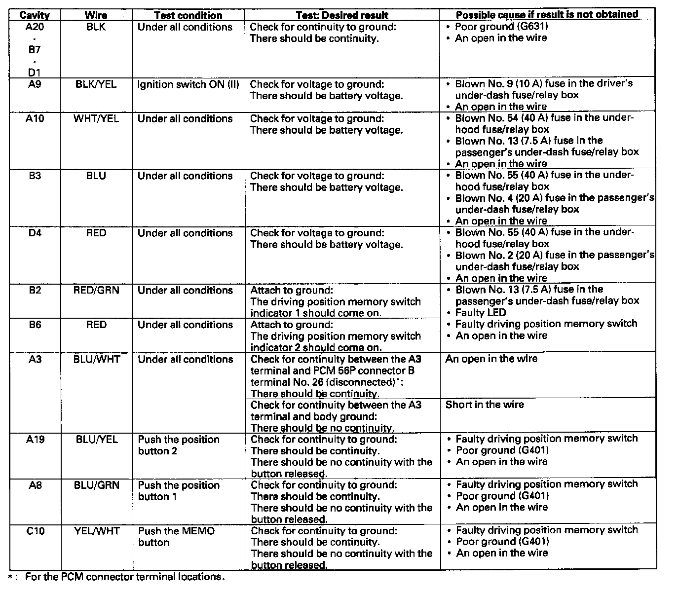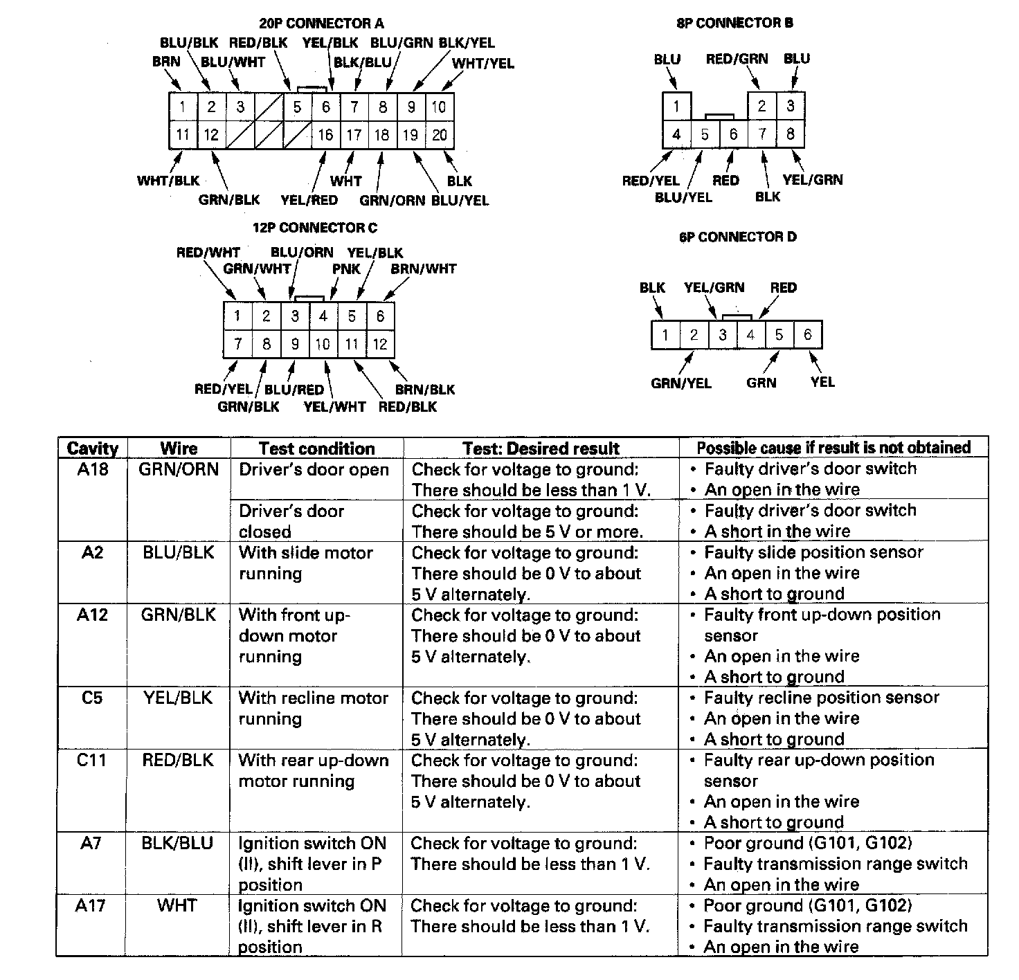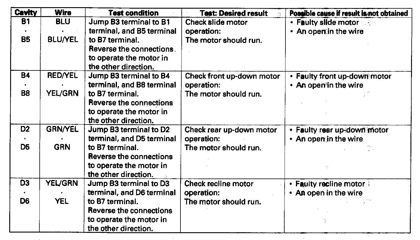 Driver's Power Seat Control Unit Input Test