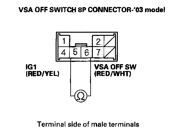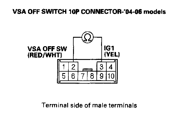 There should be continuity while the VSA OFF switch is pushed.