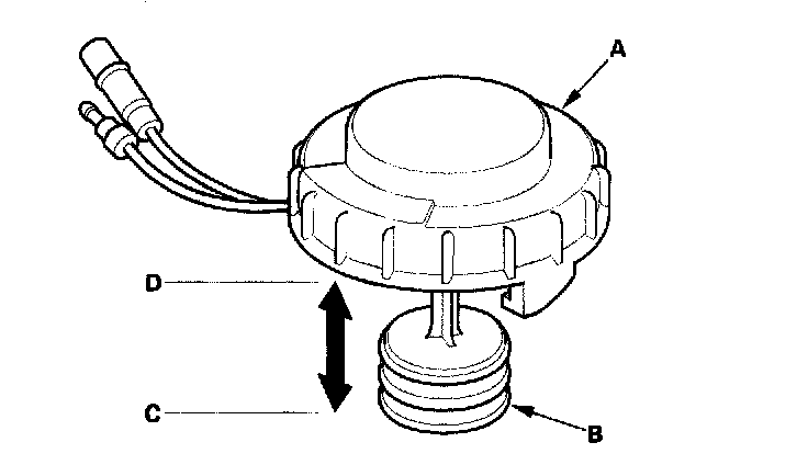 2. Check for continuity between the terminals with the float in the down position (C) and the up position (D).