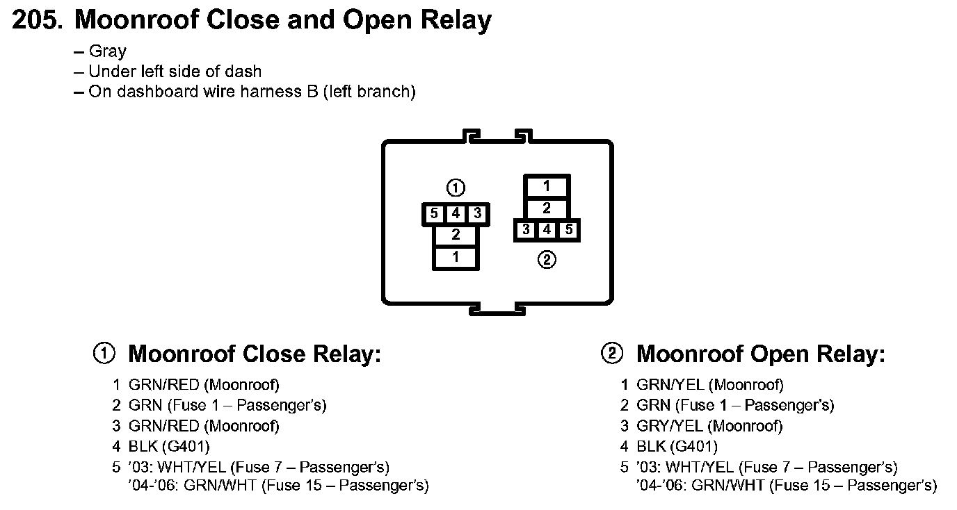 205. Moonroof Close And Open Relay: