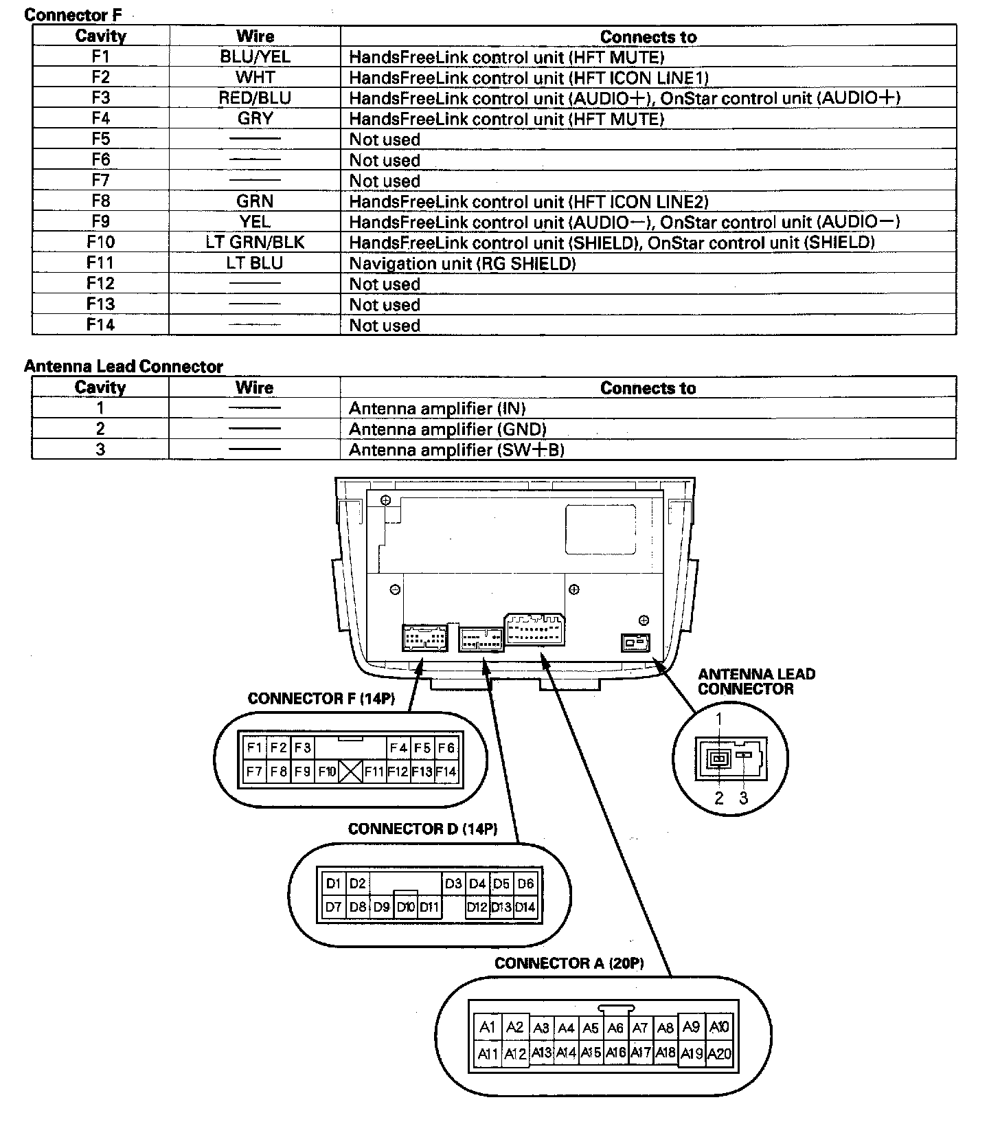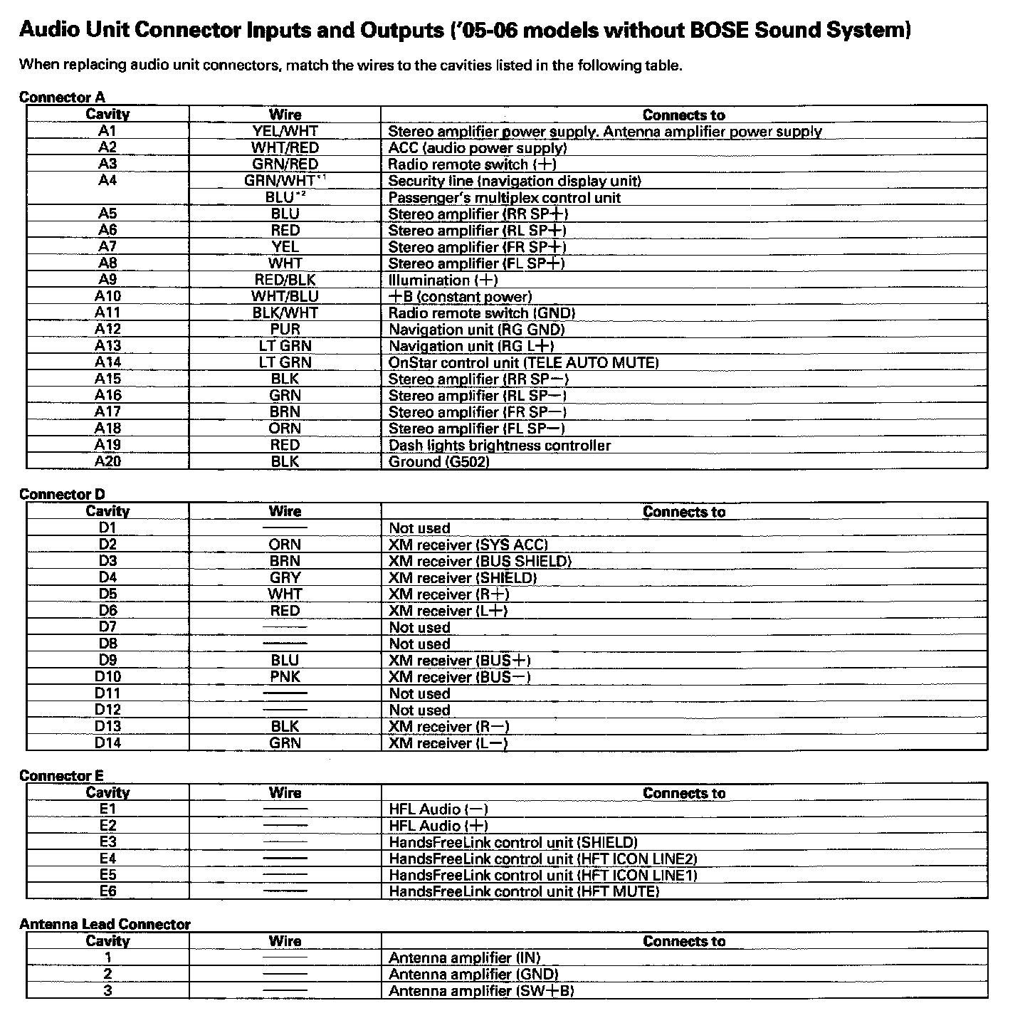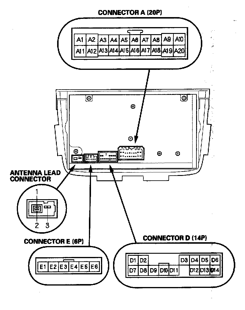Audio Unit Connector Inputs And Outputs ('05-06 Model Without BOSE Sound System) Part 1: