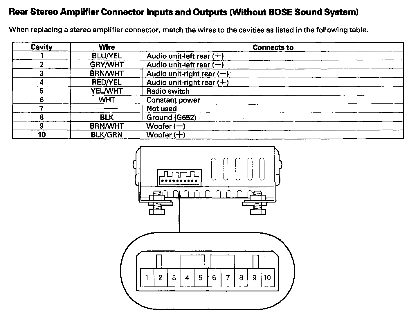 Rear Stereo Amplifier Connector Inputs And Outputs (Without BOSE Sound System):