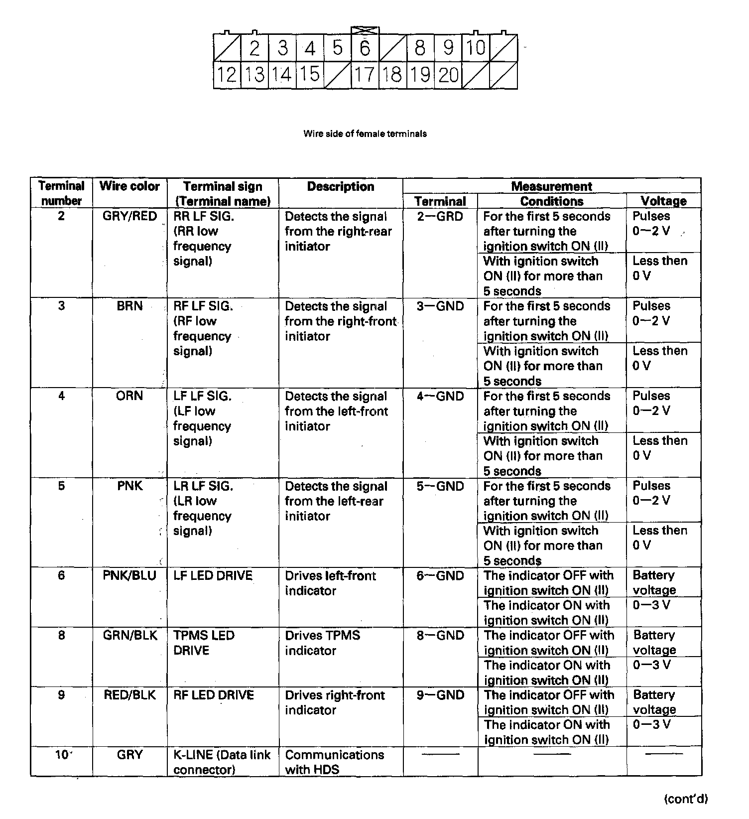 TPMS Control Unit Inputs and Outputs for Connector B (22P) (continued):