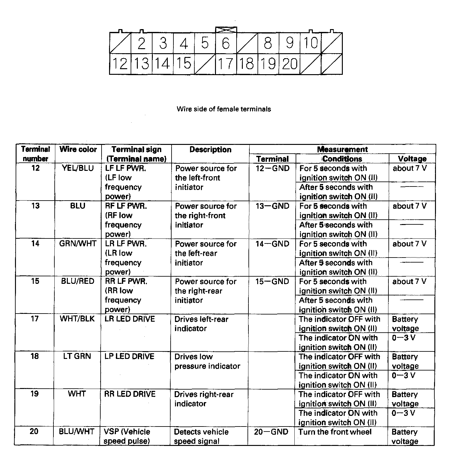 TPMS Control Unit Inputs and Outputs for Connector B (22P):