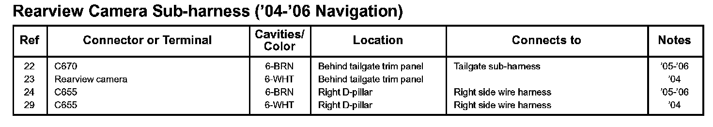 Rearview Camera Sub-Harness ('04-'06 Navigation):