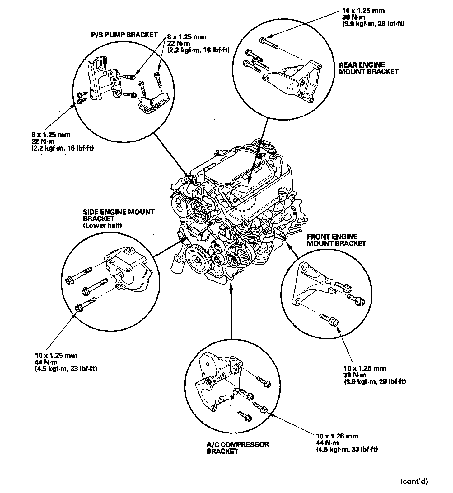 1. Install the accessory brackets and tighten their bolts to the specified torques.