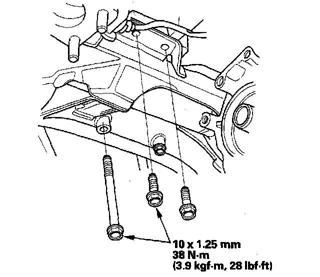 11. Tighten the upper half of the side engine mount bracket bolts.