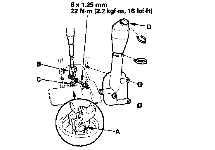 45. Install the shift cable with the spring clip/washer, then install the shift cable bracket.