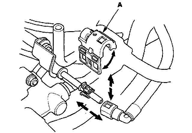44. 2005-2006 models: Connect the fuel feed hose, then install the quick-connect fitting cover (A).