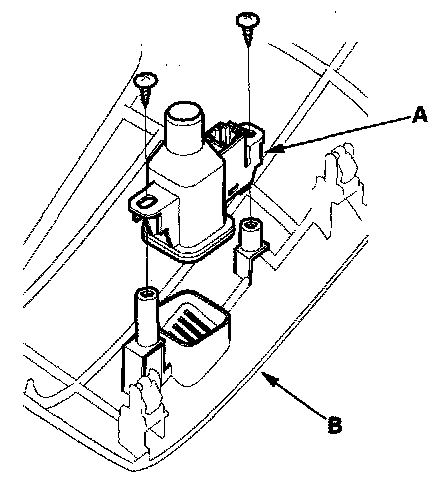 2. Remove the self-tapping screws and the in-car temperature sensor (A) from the driver's dashboard lower cover (B).