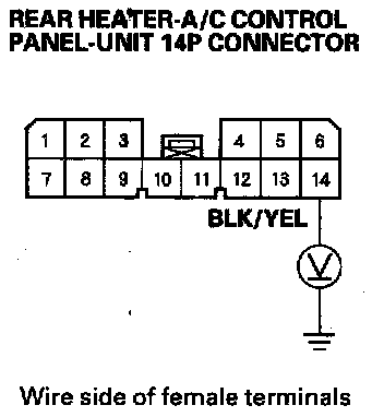4. Measure the voltage between the No. 14 terminal of the rear heater-A/C control panel-unit 14P connector and body ground.