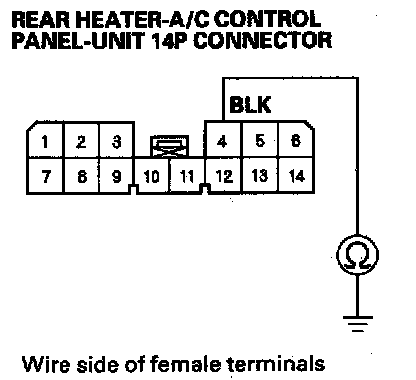 6. Check for continuity between the No. 4 terminal of the rear heater-A/C control panel-unit 14P connector and body ground.