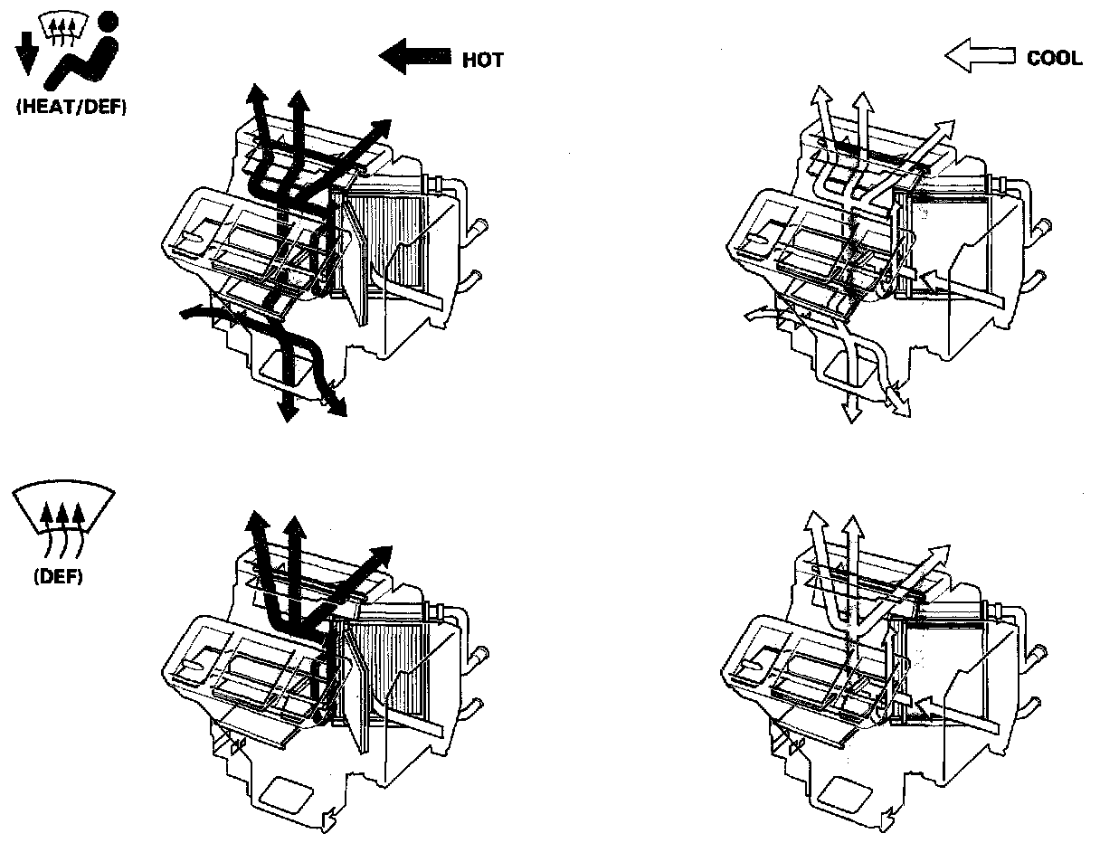 System DescriptionThe air conditioning system removes heat from the passenger compartment by circulating refrigerant through the system as shown.