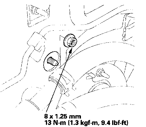 6. Remove the mounting nut from the heater unit. Take care not to damage or bend the fuel lines and the brake lines, etc.